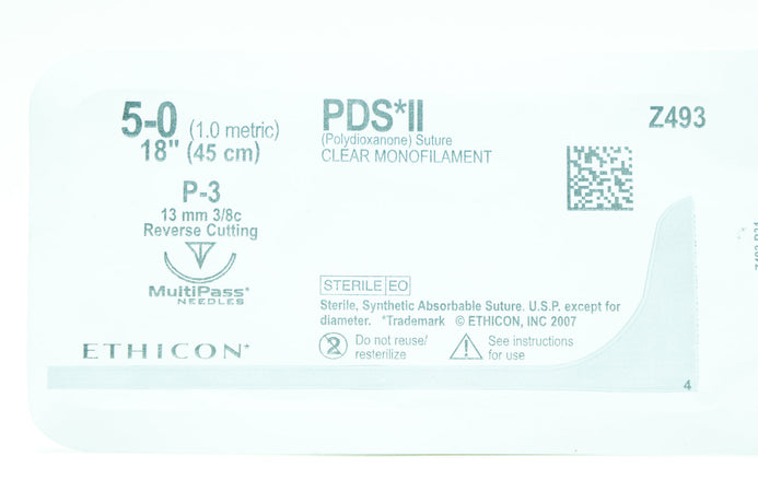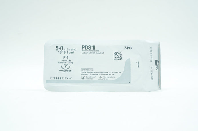 Ethicon Z493 5-0 PDS II, P-3 13mm 3/8c Reverse Cutting, 18inch