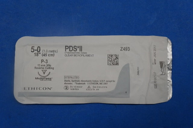 - Ethicon Z493G 5-0 PDS II, P-3 13mm 3/8c Reverse Cutting, 18 - Box of 11