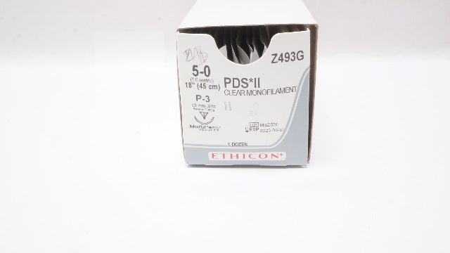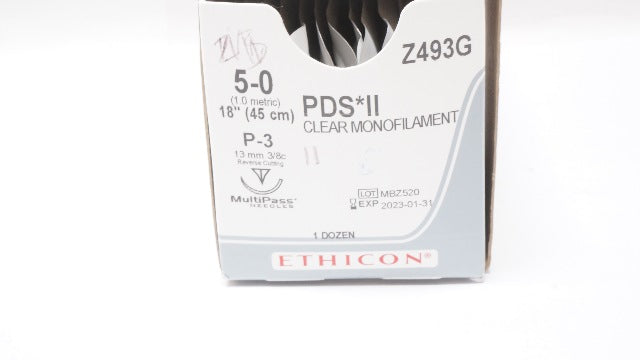 Ethicon Z493G 5-0 PDS II, P-3 13mm 3/8c Reverse Cutting,18inch (x) - Box of 11