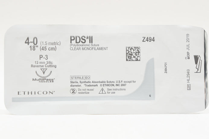 Ethicon Z494 4-0 PDS II, P-3 13mm 3/8c Reverse Cutting, 18inch