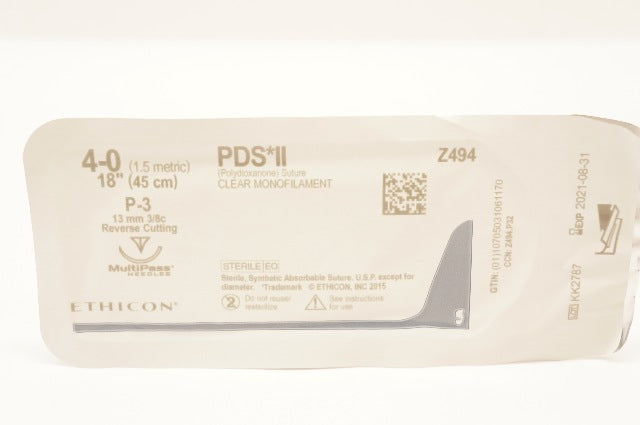 Ethicon Z494 4-0 PDS II Polydiox. Stre P-3 13mm 3/8c Reverse Cutting 18inch (x)