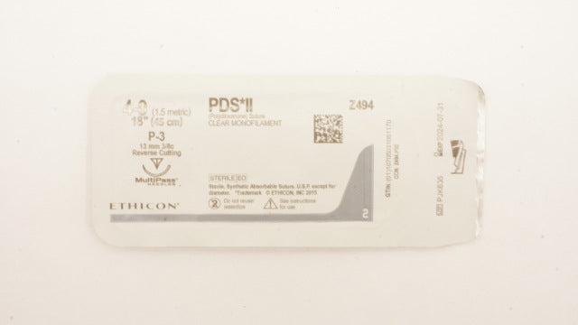 Ethicon Z494 4-0 PDS II Polydioxanone Suture Clear Monofilament P-3 13mm 3/8c Reverse Cutting, 18inch
