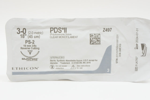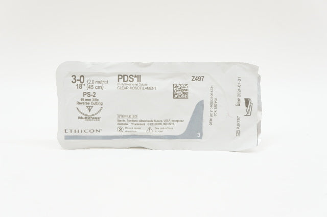 Ethicon Z497 3-0 PDS II, PS-2, 19mm 3/8c Reverse Cutting, 18inch