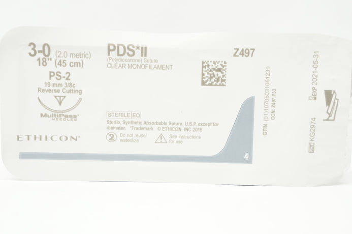 Ethicon Z497 3-0 PDS II Stre PS-2 19mm 3/8c Reverse Cutting, 18inch (x)