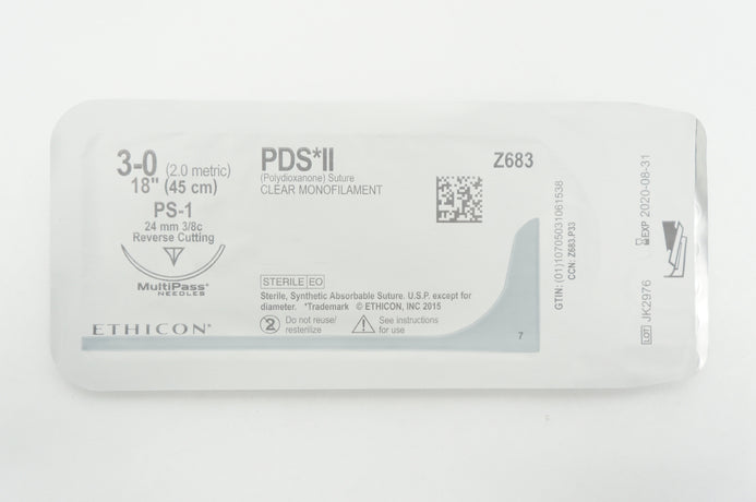 Ethicon Z683 3-0 PDS II, PS-1, 24mm 3/8c Reverse Cutting, 18 inch