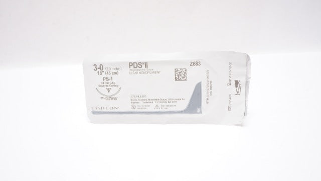 - Ethicon Z683 3-0 PDS II Stre PS-1 24mm 3/8c Reverse Cutting, 18inch (x)