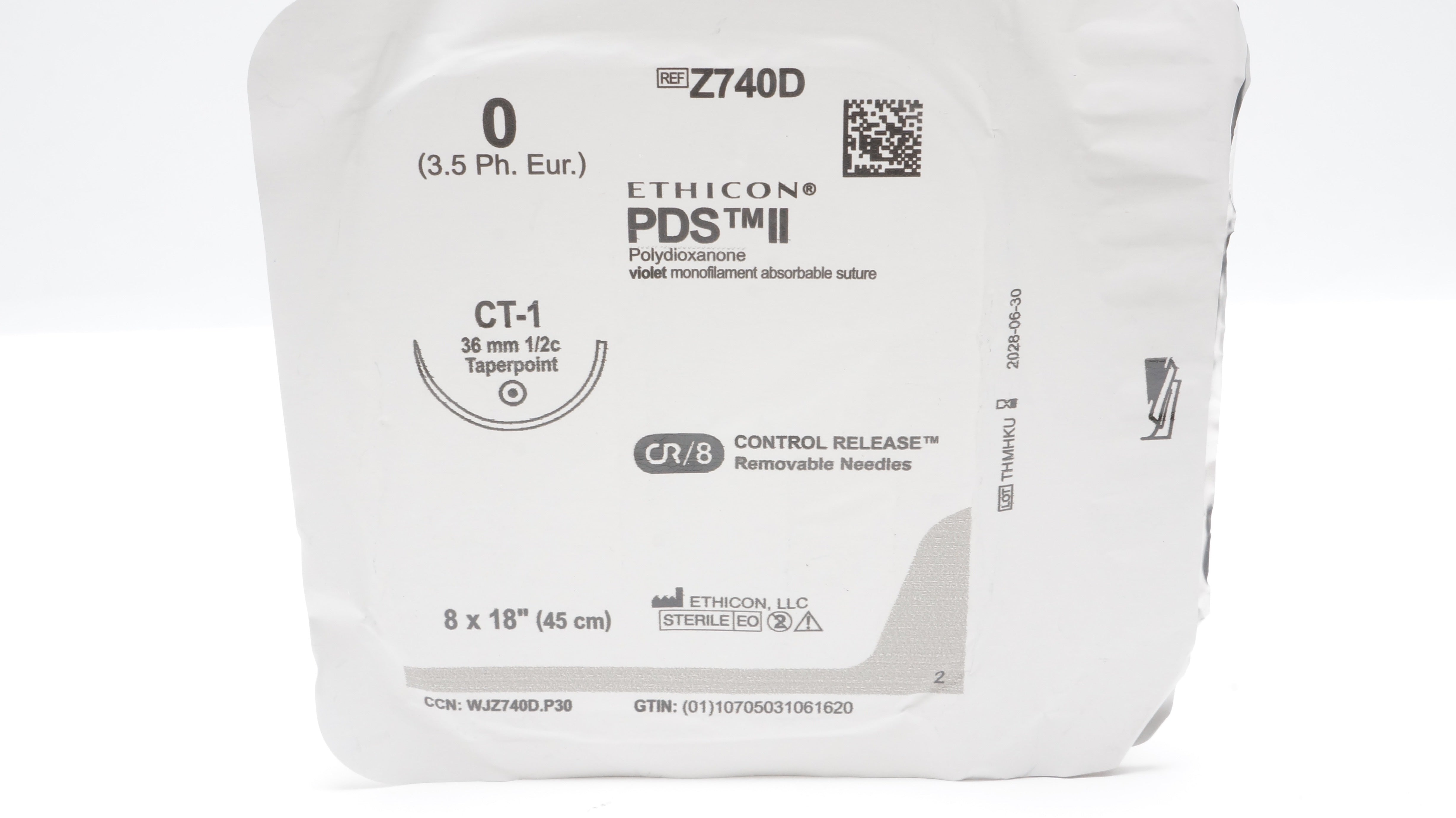 Ethicon Z740D 0 PDS II Polydioxanone Stre CT-1 36mm 1/2c Taperpoint 8x18inch