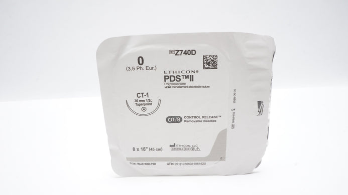 Ethicon Z740D 0 PDS II Polydioxanone Violet Monofilament Suture CT-1 36mm 1/2c Taperpoint 8x18inch