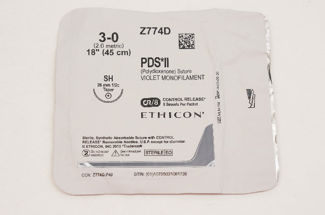 - Ethicon Z774D 3-0 PDS II, SH, 26mm 1/2c Taper, 18inch