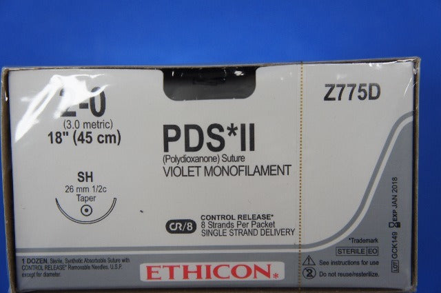 Ethicon Z775D PDS II, Taper Point, Absorbable, SH 26mm, Violet Monofilament 8-18", Size: 2-0