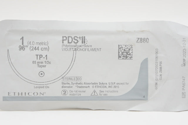 - Ethicon Z880 1 PDS II, TP-1, 65mm 1/2c Taper, 96inch