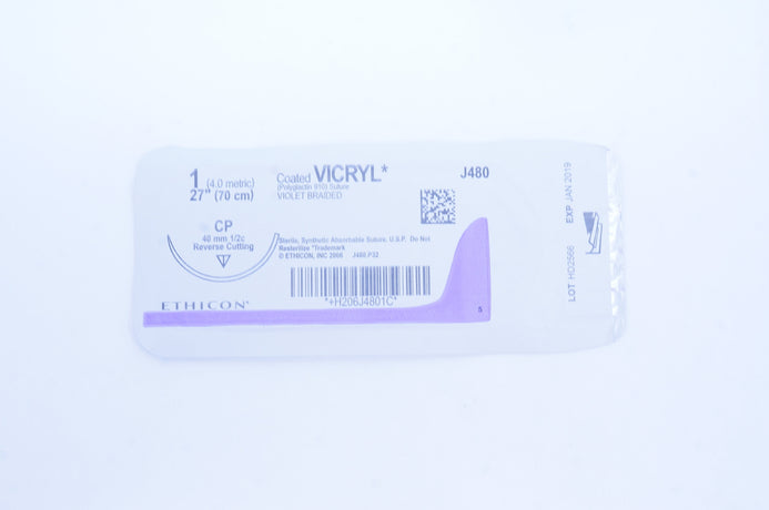 - Eticon J480 1 Coated VICRYL CP 40mm 1/2c Reverse Cutting, 27 inch (x)