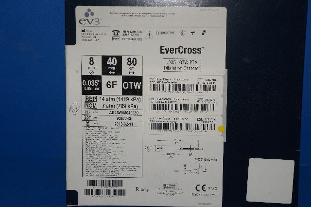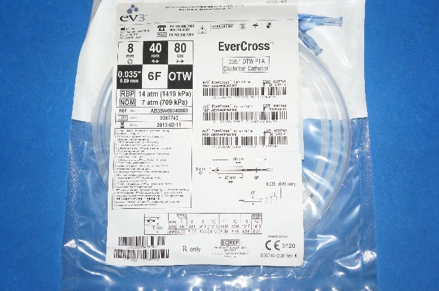 - EV3 AB35W08040080 EverCross OTW PTA Dilatation Cath. 8mm x 40mm (x)