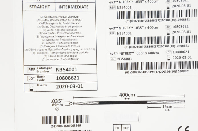 - EV3 N354001 Nitrex Guidewire, Straight, Intermediate 3.035in x 400cm x 15cm (x)