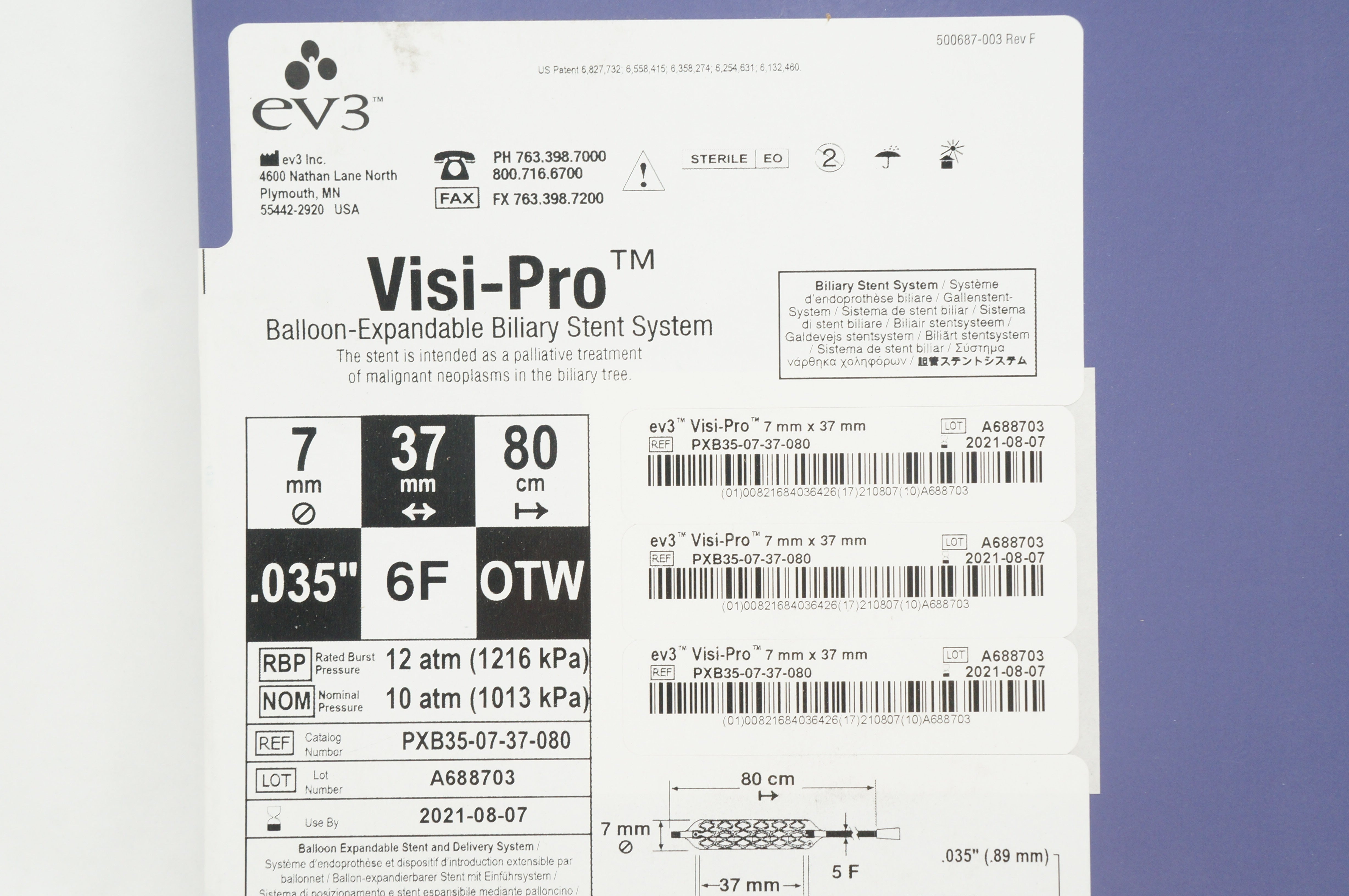 ev3 PXB35-07-37-080 Visi-Pro Balloon-Expandable Biliary Stent System 37mm x 80cm x .035inch