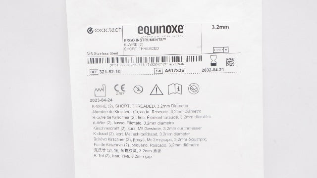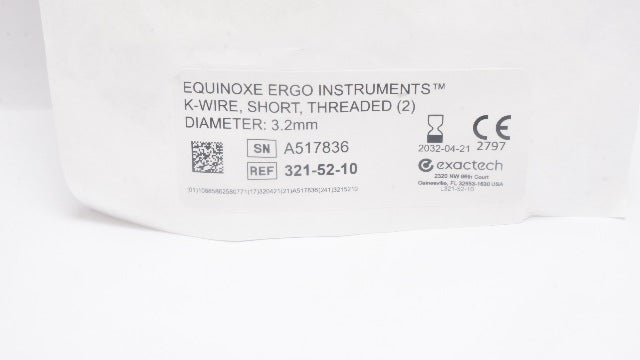 - Exactech 321-52-10 Equinoxe Ergo Instruments K-Wire (2) Short Threaded 3.2mm