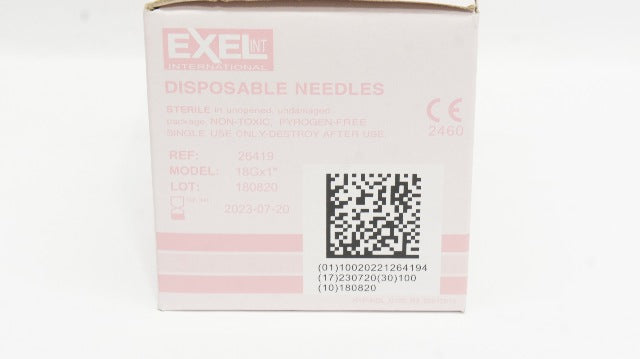 Exel 26419 Disposable Hypodermic Needles 18G x 1 inch (x) - Box of 100