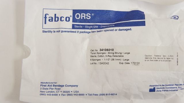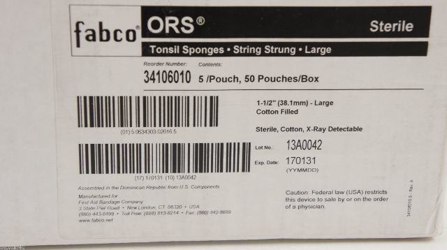 - Fabco 34106010 ORS Tonsil Sponges String Strung Large 1-1/2in ~Box of 50 Pouches