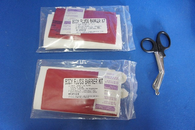 2 x Body Fluid Barrier Kit Units (2 Pair Vinyl Gloves, 1 Face Shield, 1 Mouth-To-Mouth Barrier, 1 - 14 x 16 Disposable Biohazard Bag)