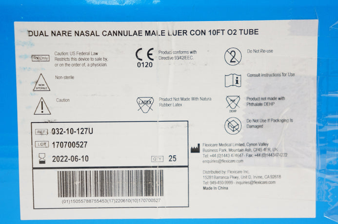 - Flexicare 032-10-127U Dual Nare Nasal Cannula 10FT O2 Tube - Box of 25
