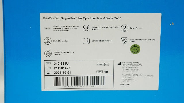 - Flexicare 040-331U BritePro Solo Fiber Optic Laryngoscope Handle MAC 1 - Box of 10