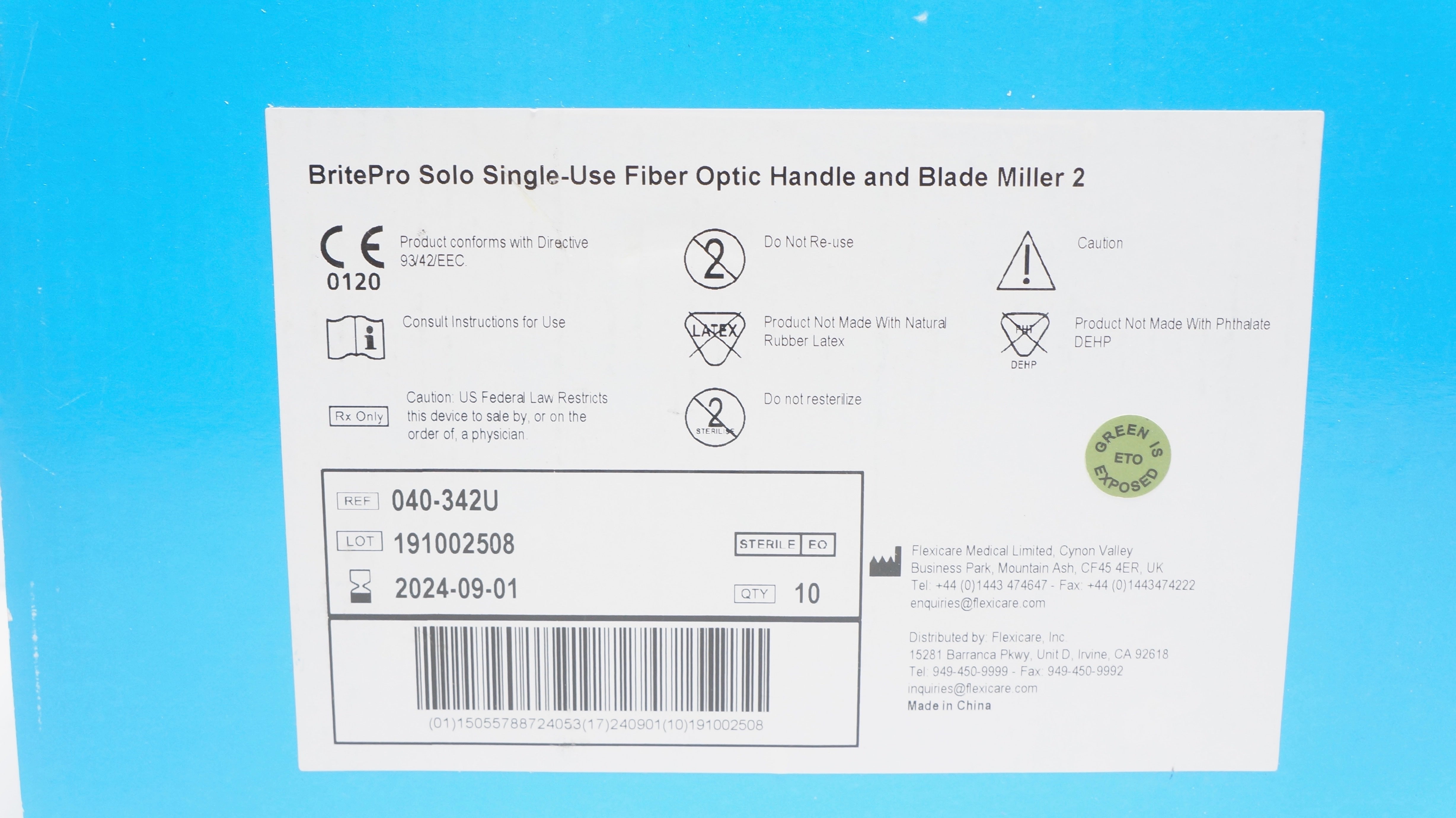 - Flexicare 040-342U BritePro Solo Fiber Optic Laryngoscope Handle -Box of10 (X)