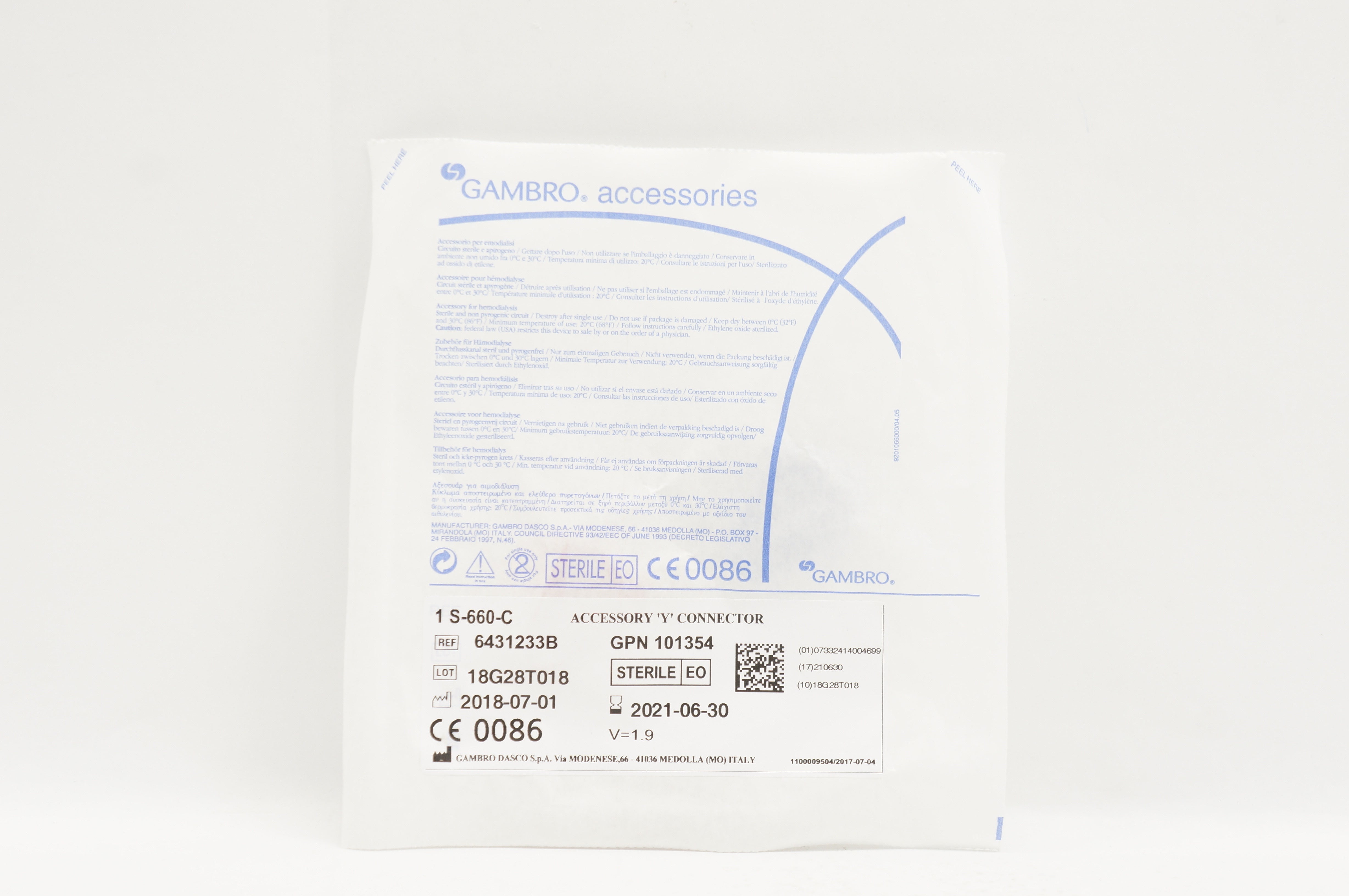Gambro 6431233B Accessory "Y" Connector (x)