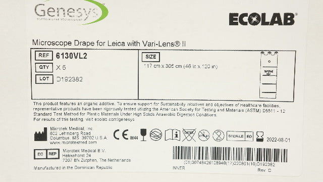 Genesys 6130VL2 Microtek Medical Microscope Drape for Leica 46inx120in -Box of 5
