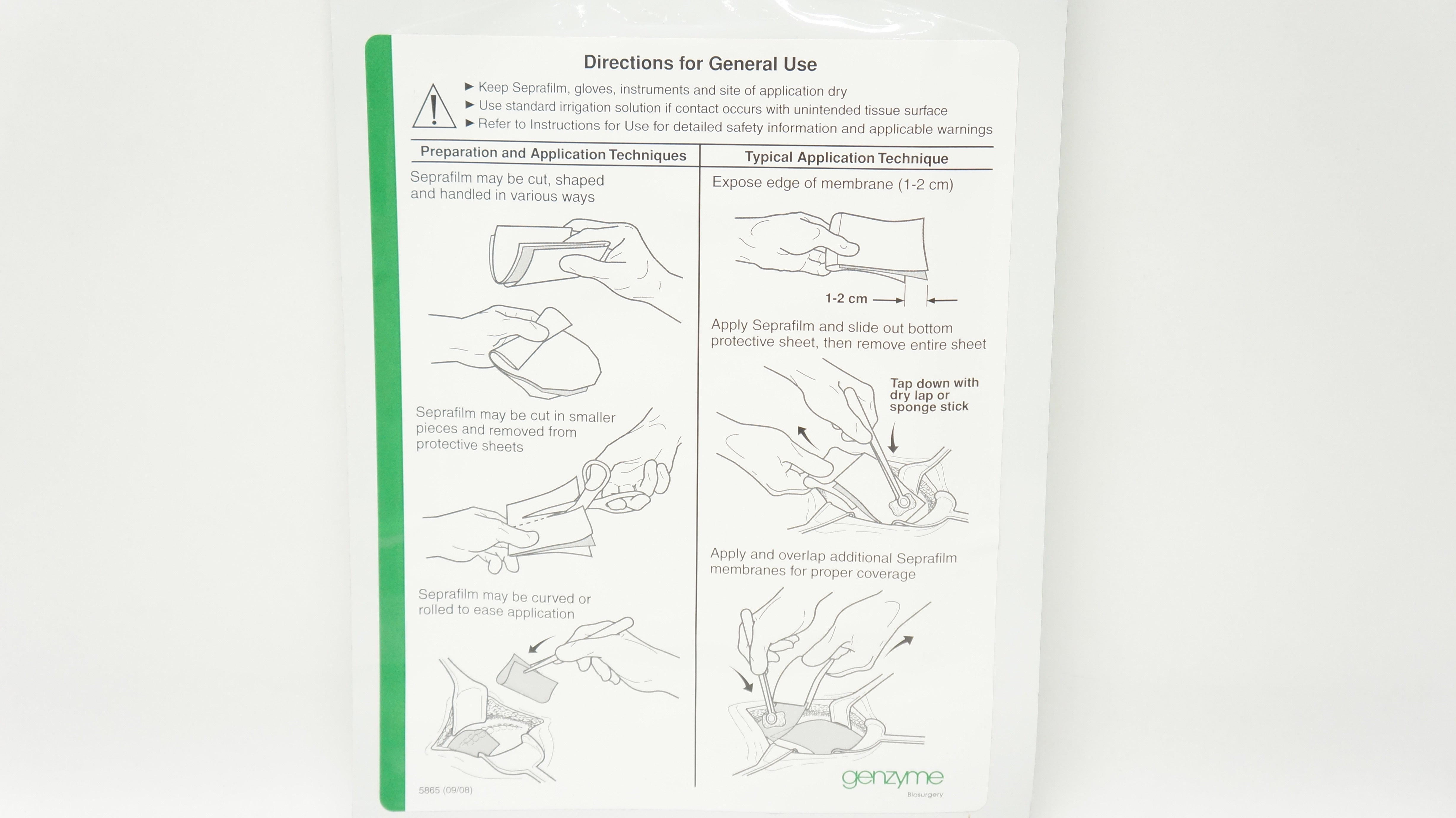 Genzyme 5086-02 Seprafilm Adhesion Barrier 3 x 5inch Membranes