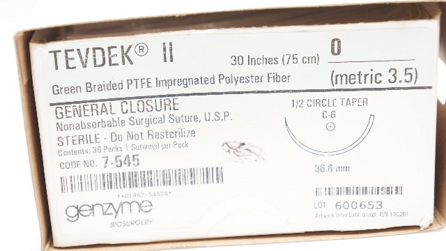 - Genzyme 7-545 TEVDEK II, 0 PTFE, C-6, 36.6mm 1/2c Taper, 30inch - Box of 32