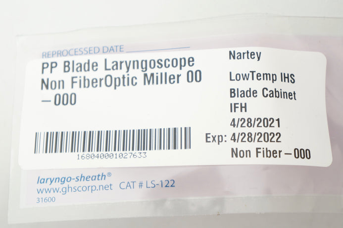 - GHS LS-122 PP Blade Laryngoscope Non FiberOptic Miller 00-000