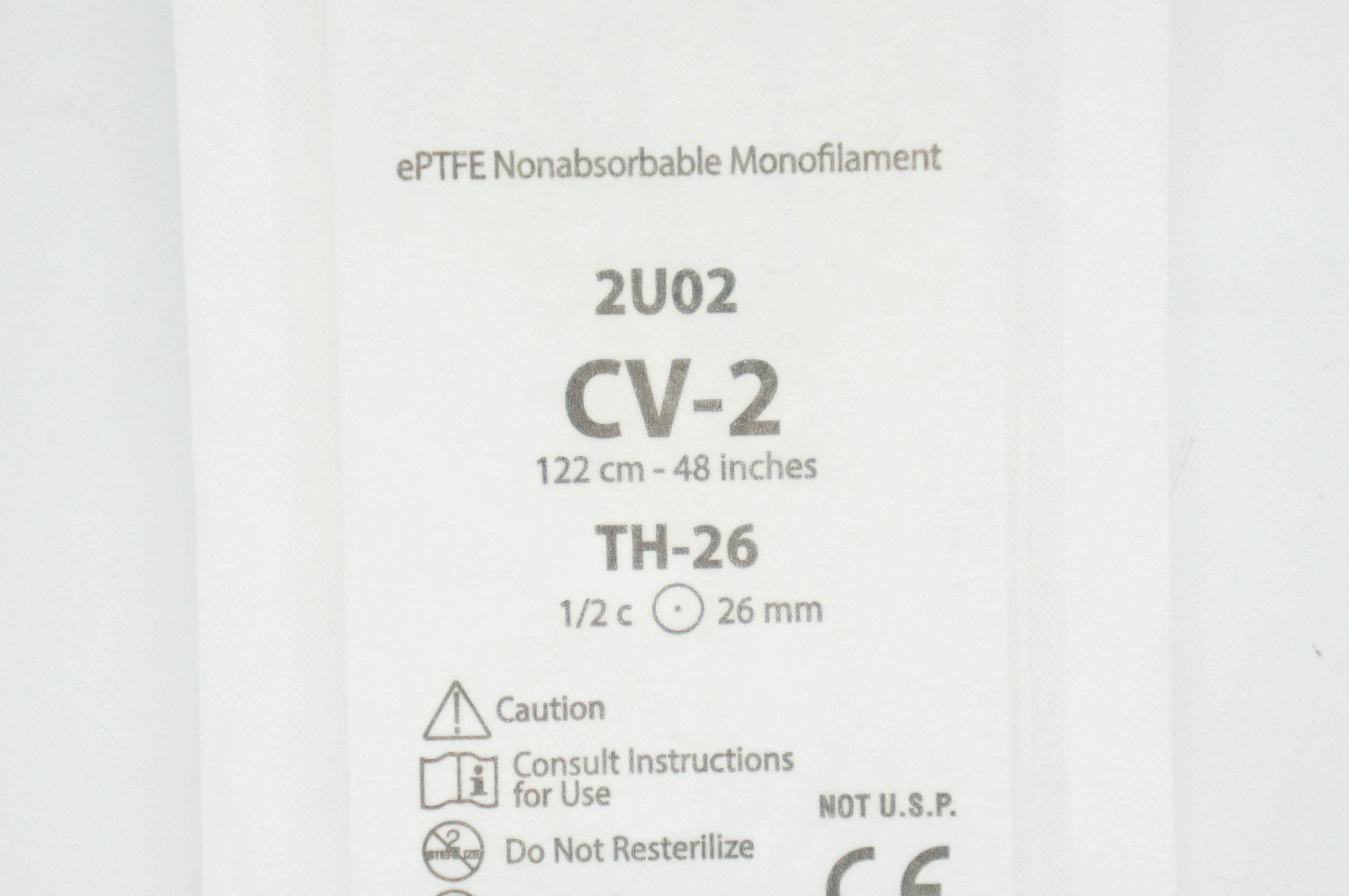 - Gore 2U02 ePTFE Nonabsorbable Monofilament, CV-2 TH-26 1/2c 26mm, 48 inch (x)