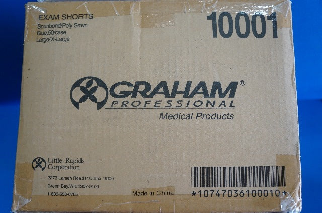Graham 10001 Exam Shorts Spunbond/Poly, Sewn, Blue, Large ~ Box of 50