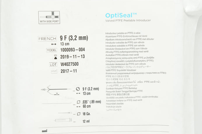 Greenbatch 1000093-004 OptiSeal Valved PTFE Peelable Introducer 9F x 13cm (x)
