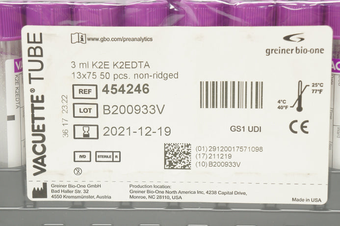 - Greiner Bio-One 454246 Vacuette Tube 3ml K2E k@EDTA 13 x 75 Non-Ridged - Box of 50