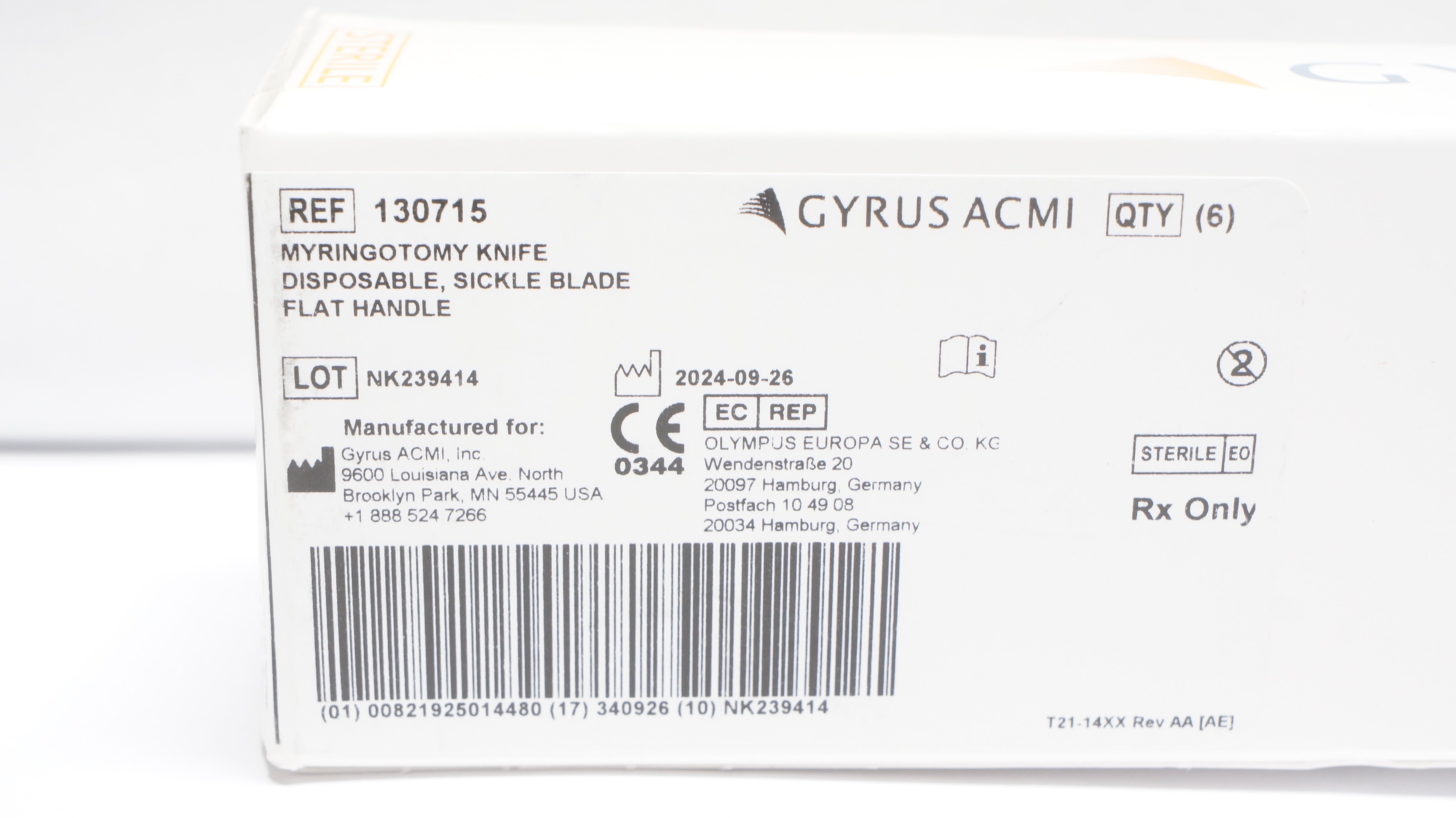 Gyrus ACMI 130715 Myringotomy Knife Disposable,Sickle Blade Flat Handle-Box of 6