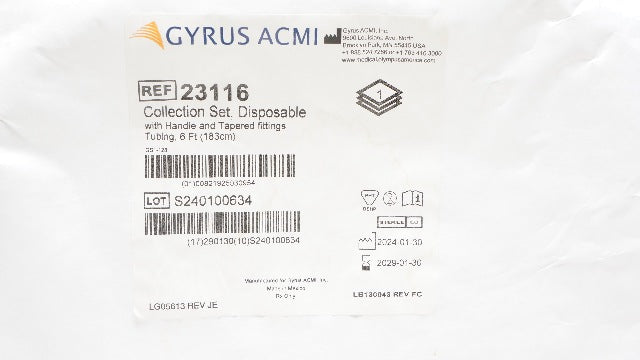 - Gyrus ACMI 23116 Collection Set with Handle and Tapered Fittings Tubing 6 Ft.