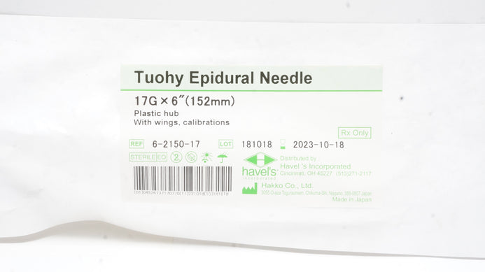 - Hakko 6-2150-17 Havel's Tuohy Epidural Ndle, 17G x 6inch (x)