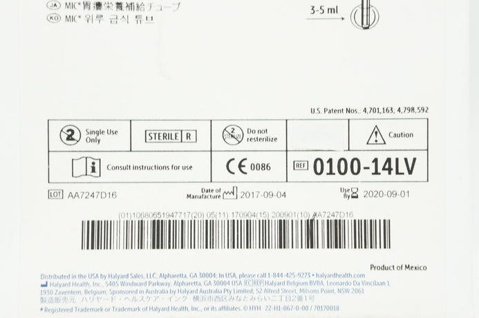 - Halyard 0100-14LV MIC Gastrostomy Feeding Tube Diam.14 Fr x 3-5ml (x)