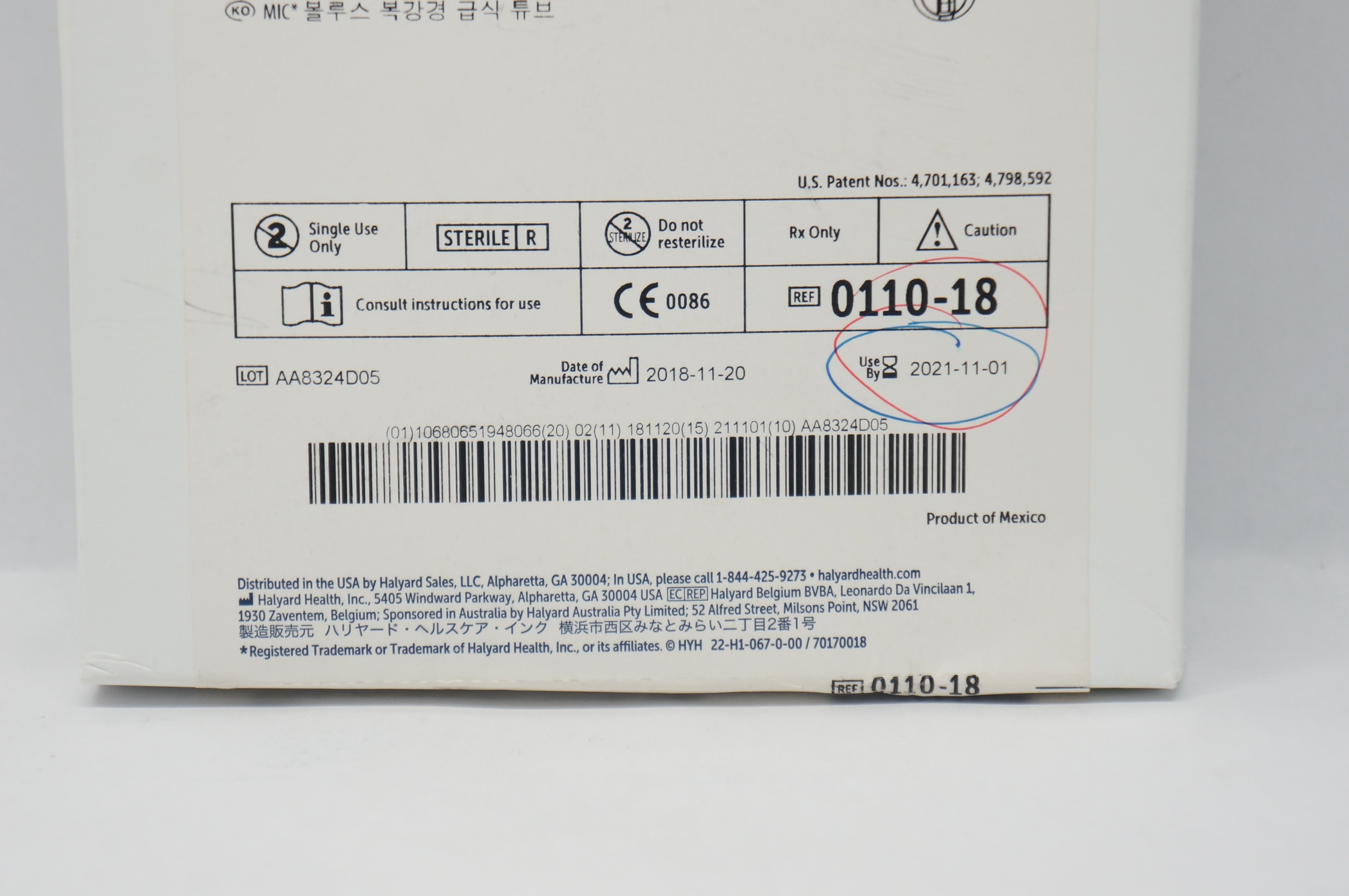 - Halyard 0110-18 MIC Bolus Gastrostomy Feeding Tube 18Fr 7-10ml (x)
