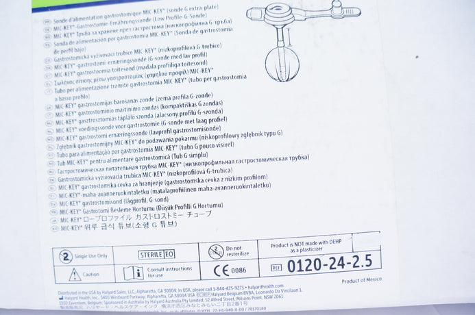 - Halyard 0120-24-2.5 Mic-Key Gastrostomy Feeding Tube 24Fr x 2.5cm (x)