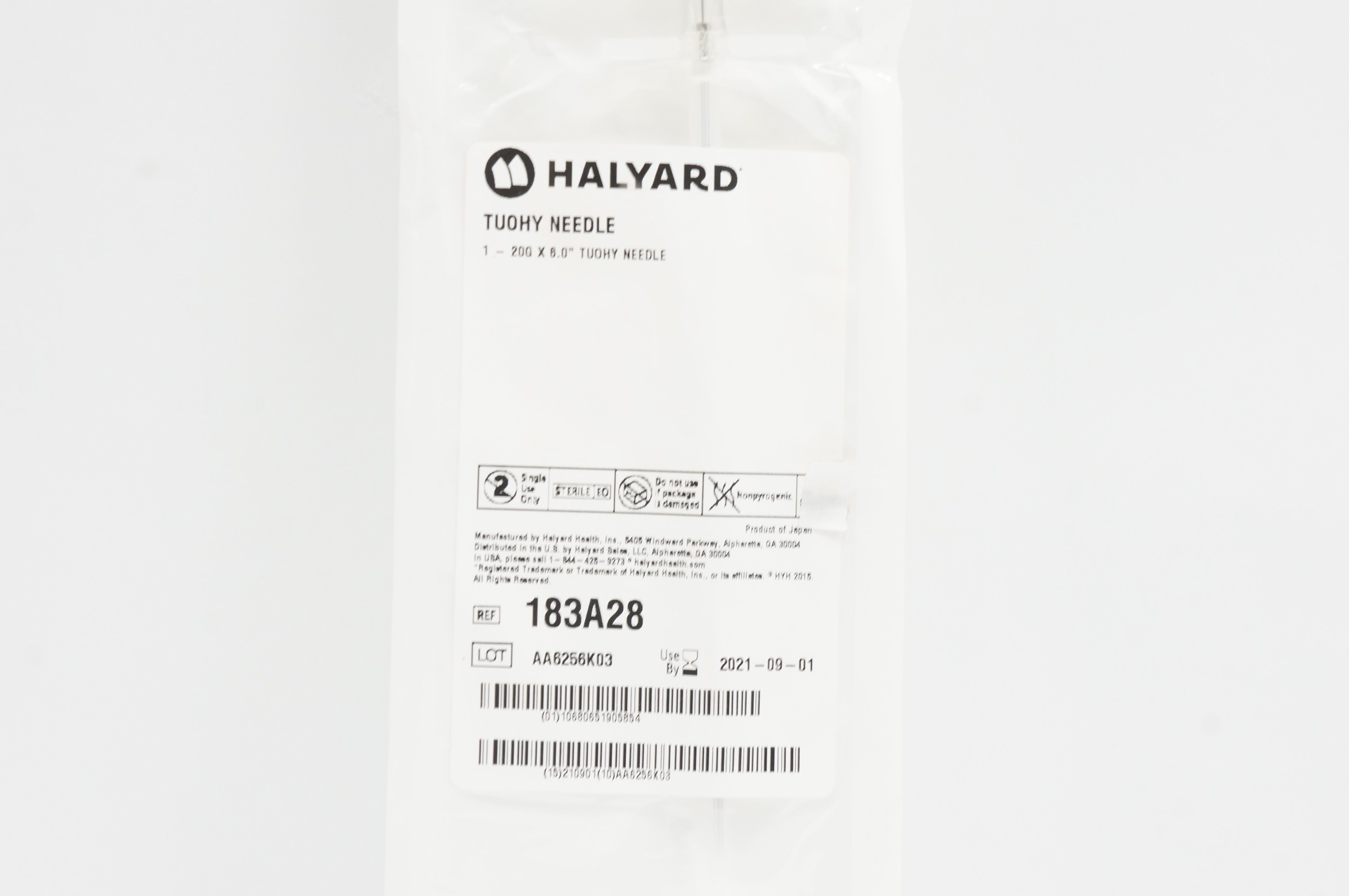- Halyard 183A28 Tuohy Needle 20G x 6inch (x)