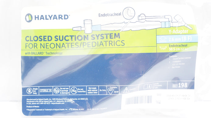 - Halyard 198 Closed Suction System for Neonates/Pediatrics 8F x 30.5cm (x)