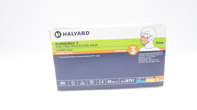 - Halyard 28797 Fluidshield 3 Fog-Free Procedure Mask, Level 3, Orange - Box of 40