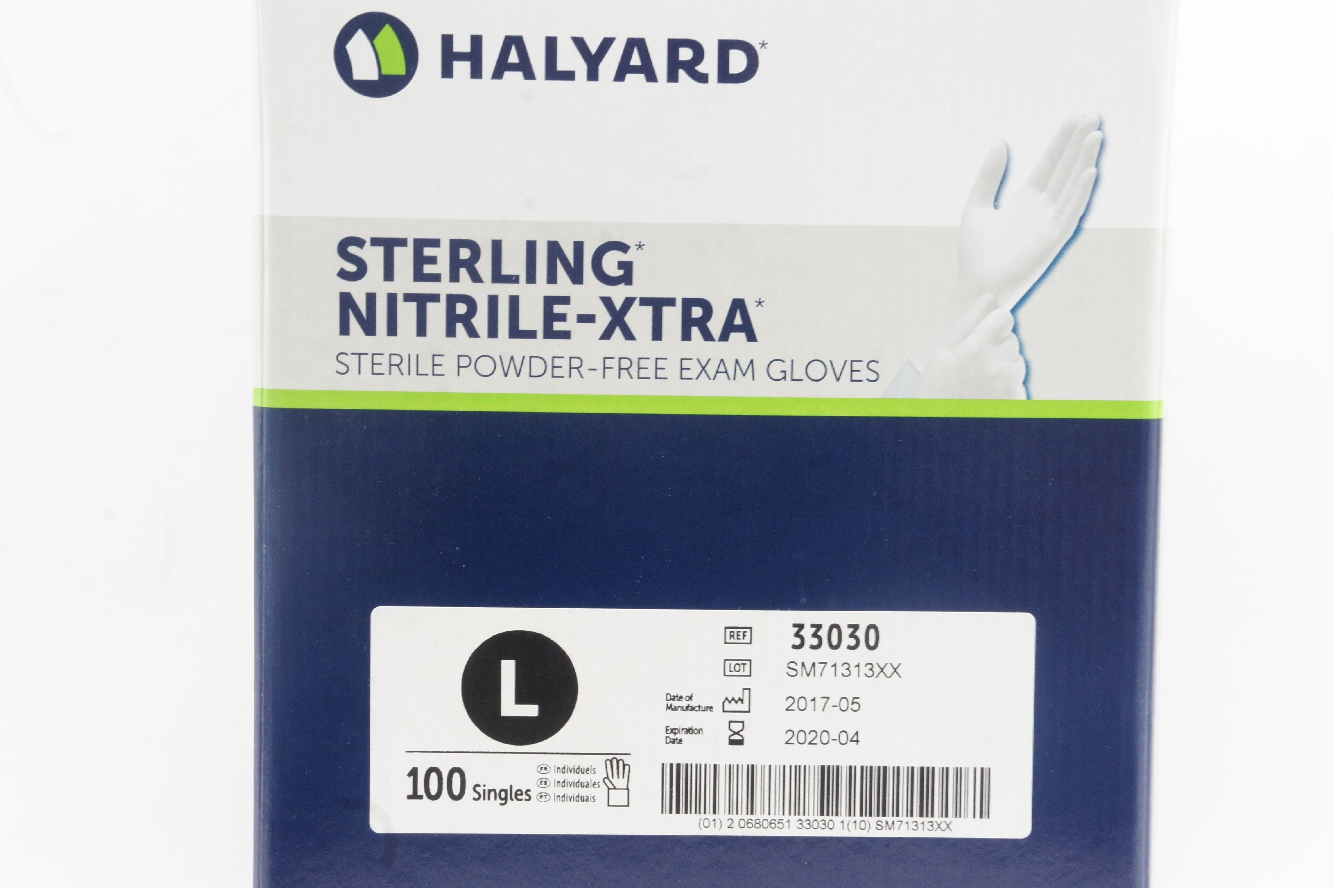 Halyard 33030 Sterling Nitrile-Xtra Powder-Free Exam Gloves L - Box of 100 (x)