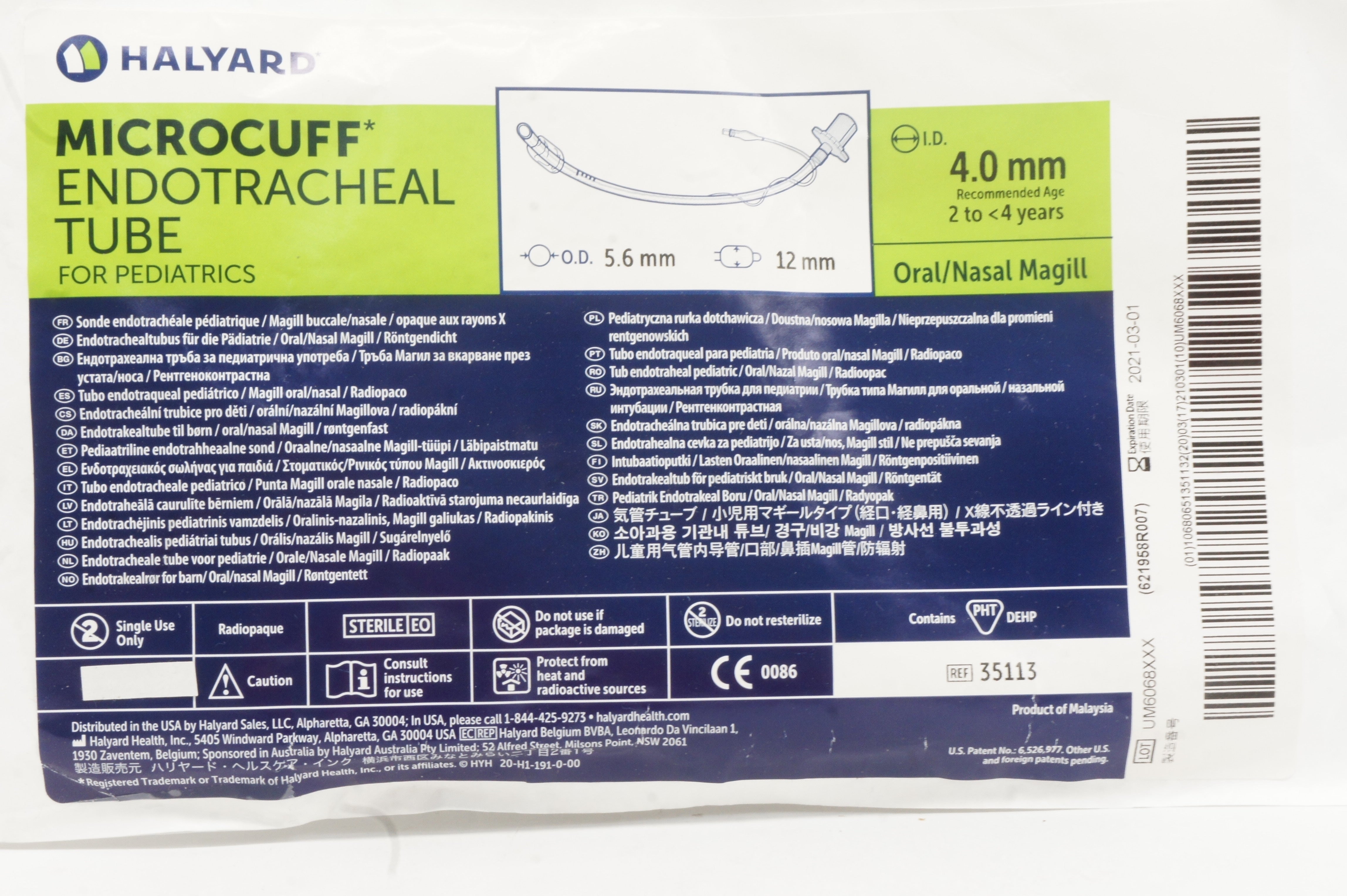 - Halyard 35113 Microcuff Endotracheal Tube 4.0mm 2 to < 4 Years (x)