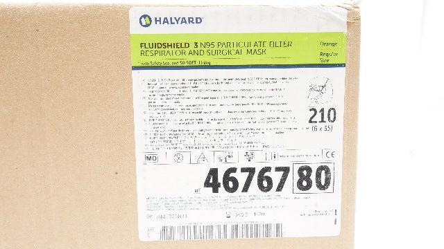 - Halyard 46767 FLUIDSHIELD N95 Particulate Filter Respirator Regular -Case of 210