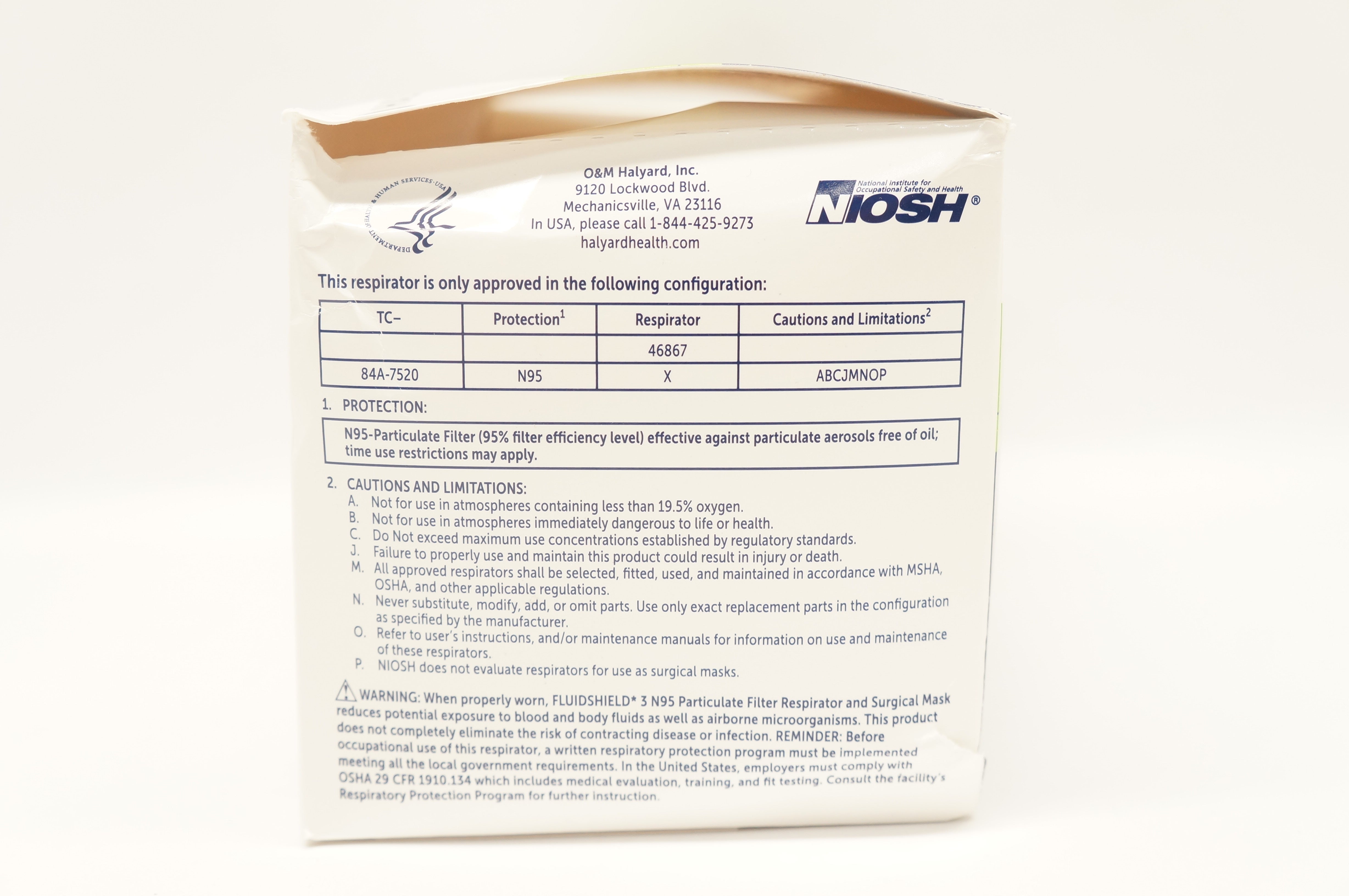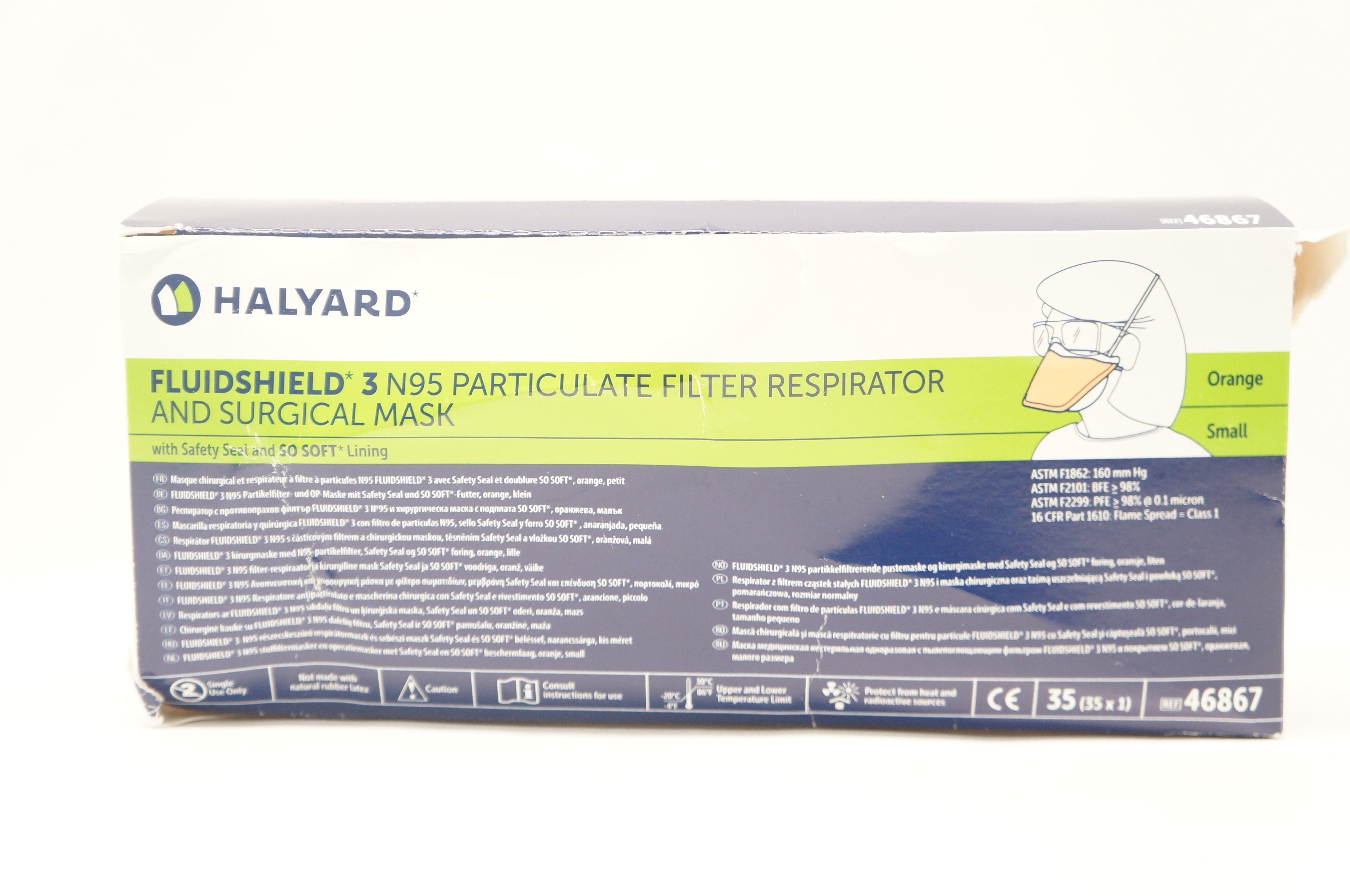 - Halyard 46867 Fluidshield 3 N95 Particulate Filter Respirator & Mask - Box of 35