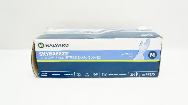 - Halyard 47375 Skybreeze Powder-Free Nitrile Exam Gloves, M - Box of 200