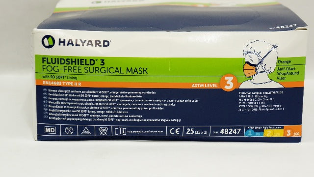 Halyard 48247 Fluidshield 3 Fog-Free Surgical Mask ASTM Level 3